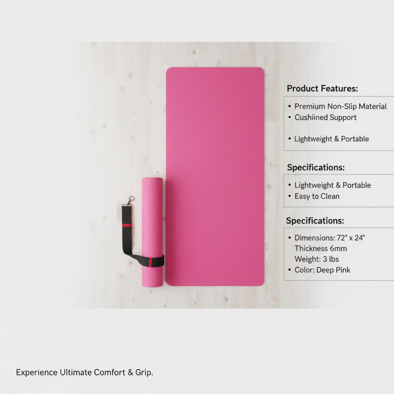 Yoga Mat Eco-Friendly for Fitness & Gym – Non-Slip Exercise Mat (180x60cm)