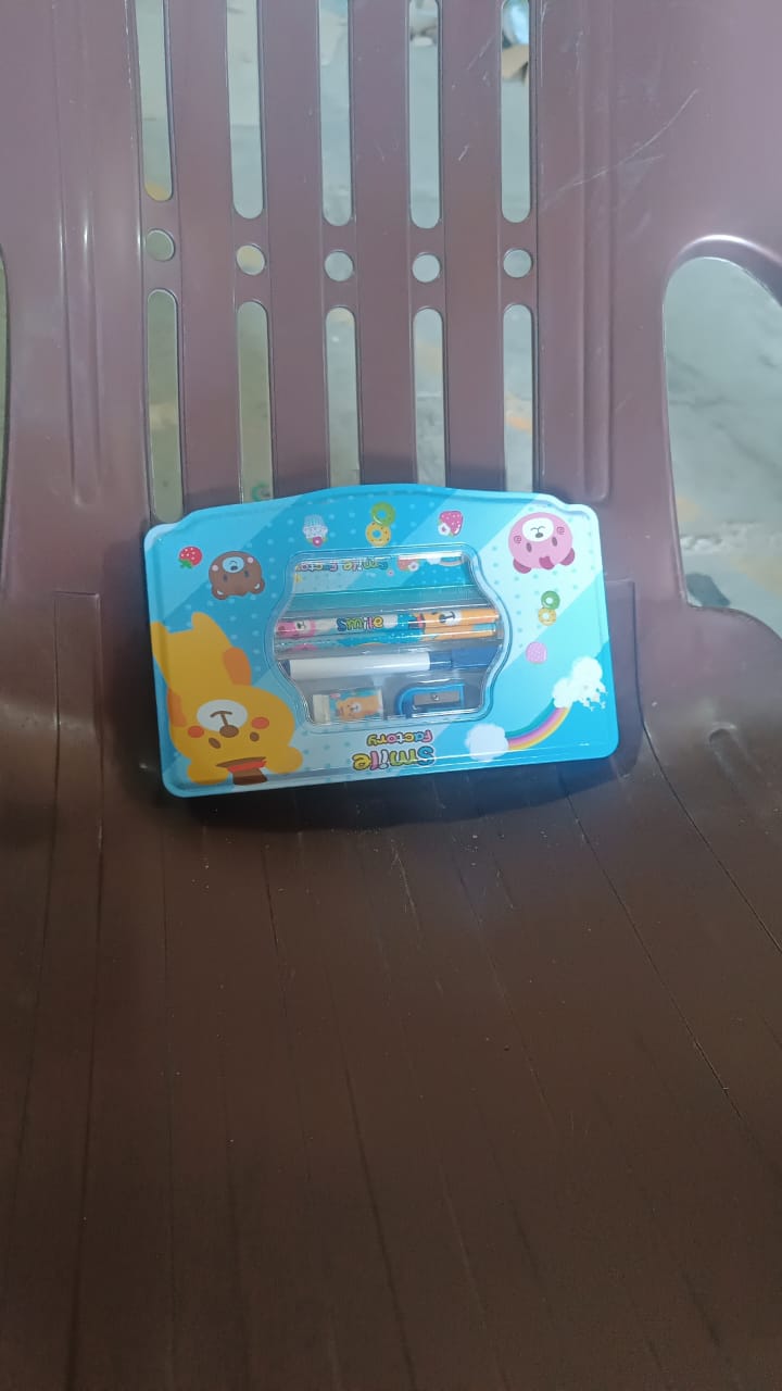 • ATTRACTIVE SHAPE : This Metal Pencil Box Provides Better Safeguarding To All Personal And Valuable Items With 1 Sharpner, 1 Pencil, 1 Eraser, 1 Scale, 1 Marker