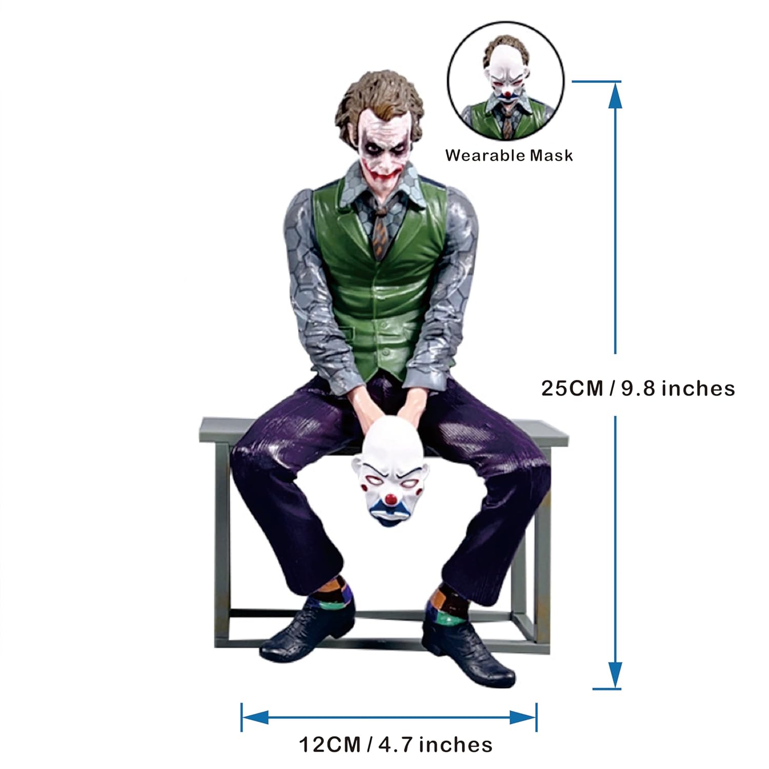 Meticulously crafted with detailed facial features, the figurine shows Joker in his classic green vest and patterned shirt, sitting with eerie calm—ready to stir a little madness. The set includes the signature clown mask used during the famous bank heist scene, completing the look and boosting the collector value.