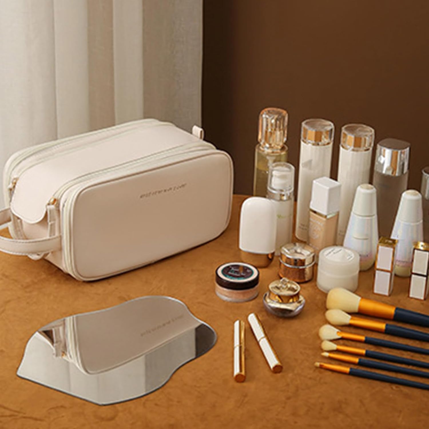 • Spacious & Practical: The large main compartment provides ample space to store full-size bottles, palettes, brushes, and other beauty essentials. It's designed to hold everything you need without being bulky.